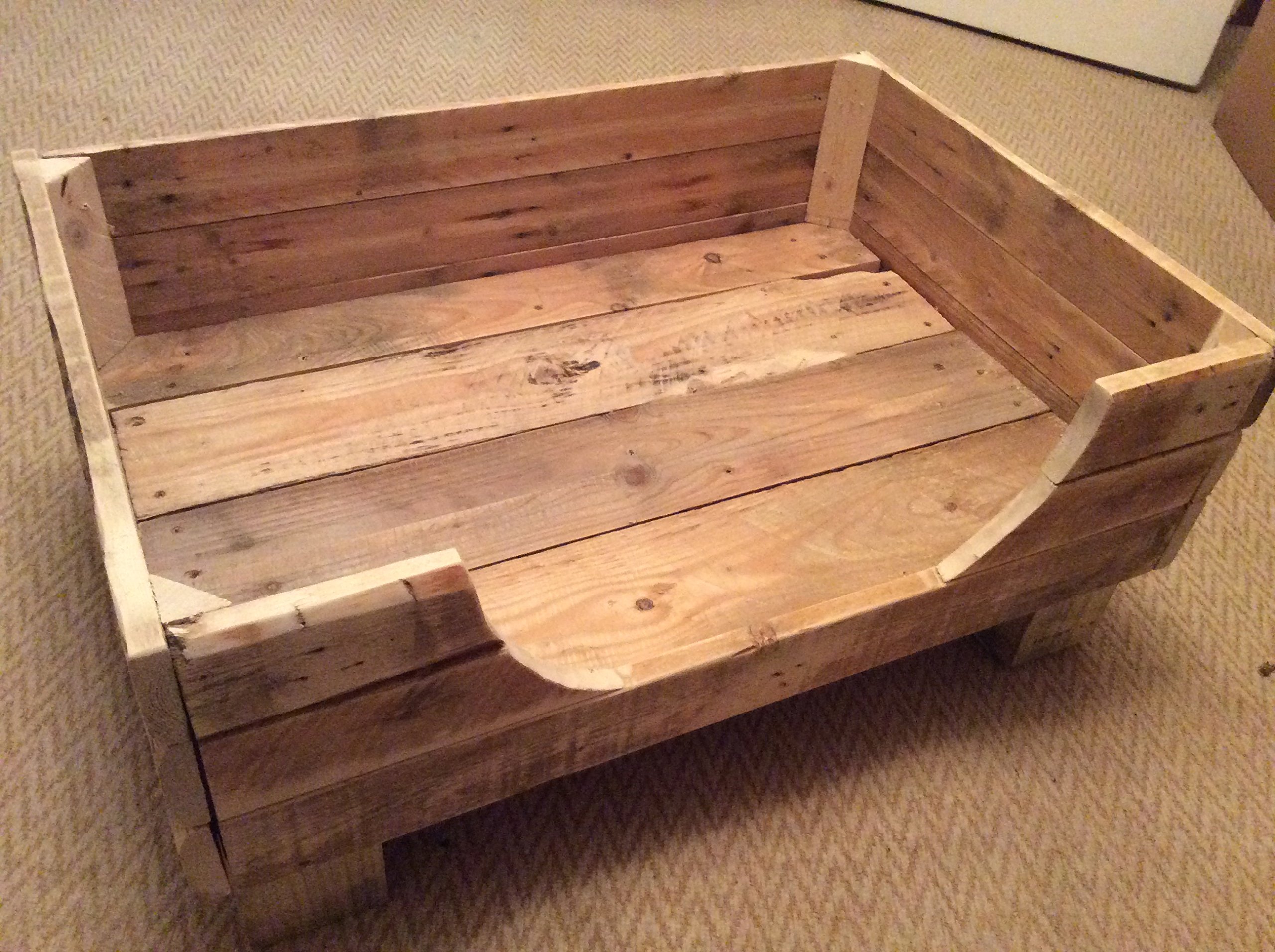 Dog bed made from pallets. 4.5 out of 5 stars. Dog bed made out of pallets. Upcycle wood pallet dog bed. So join us and share your pallet projects. The hut shaped back of the bed makes it a kind of kingly treasure. We've taken that task off your plate, not only by sniffing out the best tutorials online, but also assessing the skill level required, and compiling your tools and materials lists. A cheap and easy way to diy dog house is through wooden pallets and wood scraps that you may have lying around, or you can totally purchase some for cheap. With unlimited ideas in your mind, make one or more smart pallet dog bed, and treat your pet. Place a dog cushion on it and place a pallet dog bed inside the pallet dog house. Before building anything though, you would need inspiration, so make sure to check out these 17 diy pallet dog house plans and ideas: You can choose to make it look like a sofa or a chair and add armrest with just a few more wood pieces. Avoid buying the dog houses to build the same luxurious one at home using free wood sources like pallets!